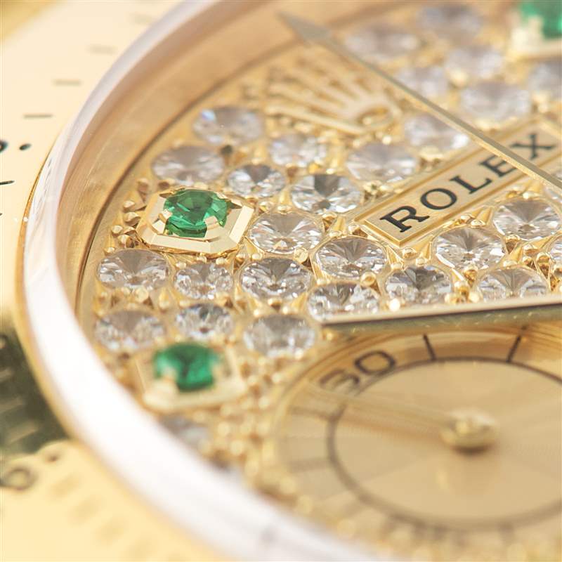 勞力士使用鉆石裝飾腕表,這一習俗始于20世紀50年代的某些蠔式腕表。有趣的是,雖然我們通常將寶石鑲嵌與貴金屬手表聯系起來,但在那個時代,即星期-日期,在精鋼6084或其他34毫米半氣泡式的時標上也可能有一些微妙的鉆石。然而,在1960年代早期至中期,寶石鑲嵌藝術在勞力士真正脫穎而出,日歷腕表推出寶石鑲嵌表圈和全鋪砌表盤。整個金光閃閃的東西一直延續到70年代,當時一些最令人難以置信的手表都生產出了多寶石鑲嵌的表圈,表盤甚至手鐲。