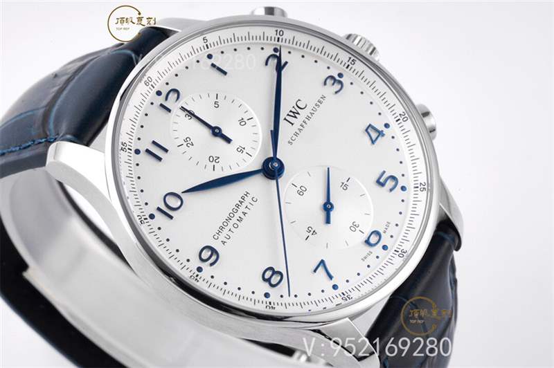 截止到目前位置,zf萬國葡計(jì)表款已經(jīng)升級(jí)到了v2終極版本,保證了外觀尺寸以及細(xì)節(jié)在外觀上無限接近正品,同時(shí)也穩(wěn)定了其同款市場(chǎng)第一的地位。葡計(jì)被大家公認(rèn)顏值高的一個(gè)地方就在于它的刻度和表針都采用了藍(lán)色處理,配上白底表盤,可謂“爽潔儒雅”。連藍(lán)寶石表鏡也做了藍(lán)色防眩光鍍膜處理,晃動(dòng)手腕可以看見若隱若現(xiàn)的藍(lán)色光影。更漂亮的地方在于,刻度和指針在進(jìn)行藍(lán)色處理之前其實(shí)都經(jīng)過了鏡面拋光。所以在不同角度、光線下,刻度和指針會(huì)因?yàn)榉垂舛鴰硭{(lán)色的深淺變化。時(shí)而是沉穩(wěn)的深藍(lán)色,藍(lán)到發(fā)黑,時(shí)而又變成了蔚藍(lán),明亮通透。