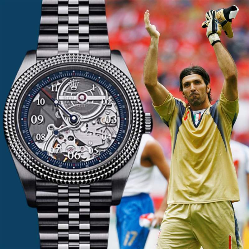 Gianluigi Buffon原本擁有的表是一款勞力士Datejust 126300搭配五珠帶的款式,他和Artisans de Genève在討論手表改裝的主題時(shí)有過(guò)一段深入的討論??雙方都同意每個(gè)人的一生都在與時(shí)間奮斗,在足球場(chǎng)上,守門(mén)員是一個(gè)很特殊的位置,因?yàn)樗m然是隊(duì)上的一份子,但是在己方球隊(duì)在進(jìn)攻過(guò)程中,守門(mén)員往往必須孤獨(dú)地駐守在自家的球門(mén)前等待下個(gè)回合敵方的進(jìn)攻時(shí)間;如同守門(mén)員一樣,制表師在專(zhuān)注于他們的工作時(shí)也會(huì)有一段長(zhǎng)時(shí)間的獨(dú)立作業(yè)期,所以Artisans de Genève和Gianluigi Buffon決定要在Datejust 126300的改裝作品中呈現(xiàn)孤獨(dú)的意境,并傳達(dá)獨(dú)樹(shù)一幟的個(gè)性。