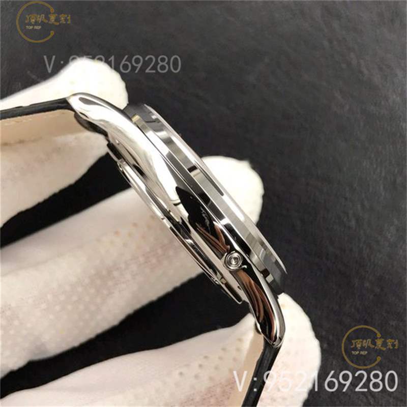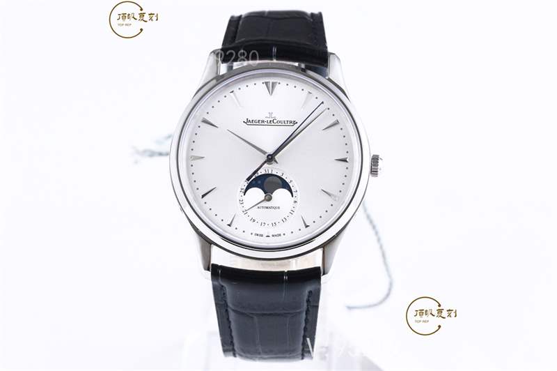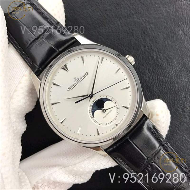 ZF廠積家月相大師系列,表殼直徑39mmX9.9mm與原裝同步。六點鐘的子盤擁有陽歷陰歷(月相)雙期顯示,月相一月轉一圈,功能和正品一致。技術突破:采用9015改積家自產Cal.925/1機芯,功能百分百同步原裝自產機芯。走時穩定,素質堅挺。細節突破:從側面觀察腕表盤面發現有微微的弧度,ZF為了達到這一效果,耗時費力多次調整模具,確保神韻和感覺能與原裝相媲美。ZF積家月相大師,滿足您對月相的一切美好情懷。