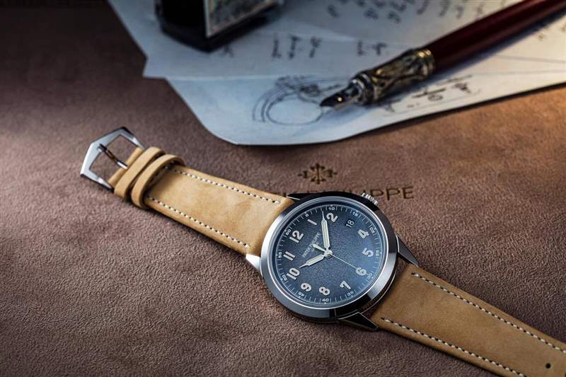 Ref. 5326與Ref. 5226之所以放在一起介紹,因?yàn)檫@兩款表從外型設(shè)計(jì)到細(xì)部裝飾都有其共通點(diǎn)。首先,它們皆隸屬于Calatrava系列底下,同樣都擁有漸變的炭灰色面盤,上頭裝飾著粒紋,加上「針筒型」造型指針與米色的夜光涂層、縝密的秒鐘刻度,還有配備的米色與黑色小牛皮表帶,展現(xiàn)強(qiáng)烈的復(fù)古風(fēng)格。