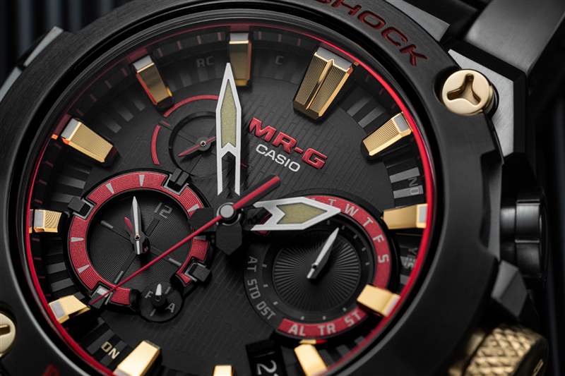原來G-SHOCK已經推出了近40年,由品牌的工程師伊部菊雄設計,全因在1981年他曾經摔壞過一枚手表而決定要研發一枚摔不壞的作品,兩年之后終于推出了品牌首枚G-SHOCK,全名為「Gravitational Shock」,立下克服重力沖擊之志。近年G-SHOCK引人入勝的金屬質感再升級,新作「赤備」所屬的MRG-B2000系列全以鈦金屬打造表殼與表帶,除了輕量化還防過敏,而且經過雙重硬化處理包括Tic深層硬化與DLC類鉆碳大幅提升整體耐磨性。