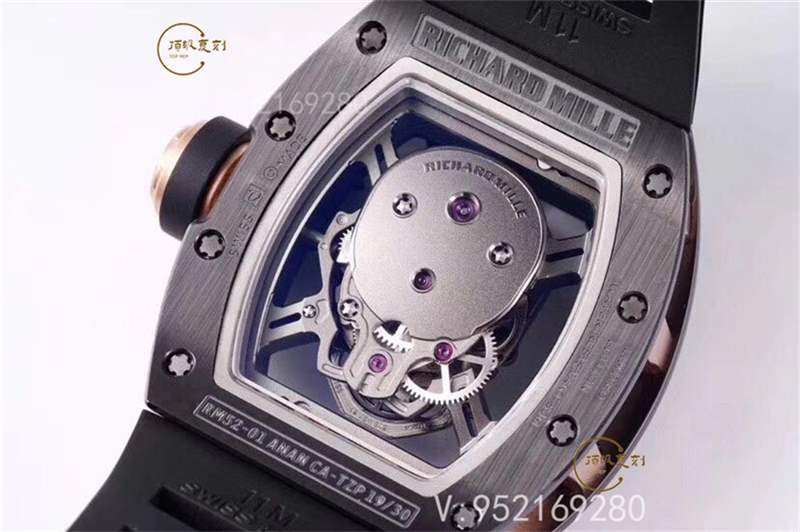 5.RM-052-1,采用TZP黑色陶瓷打造,材質(zhì)保持原廠品質(zhì)。這種低密度材料(6g / cm3)具有高耐刮擦性和低導熱系數(shù)。RM-052,五級鈦底蓋硬度極高,其上的刻字深邃,彰顯非凡復刻底蘊,是經(jīng)歷無數(shù)次嘗試的結(jié)晶,也是復刻表工藝的巔峰體現(xiàn)!