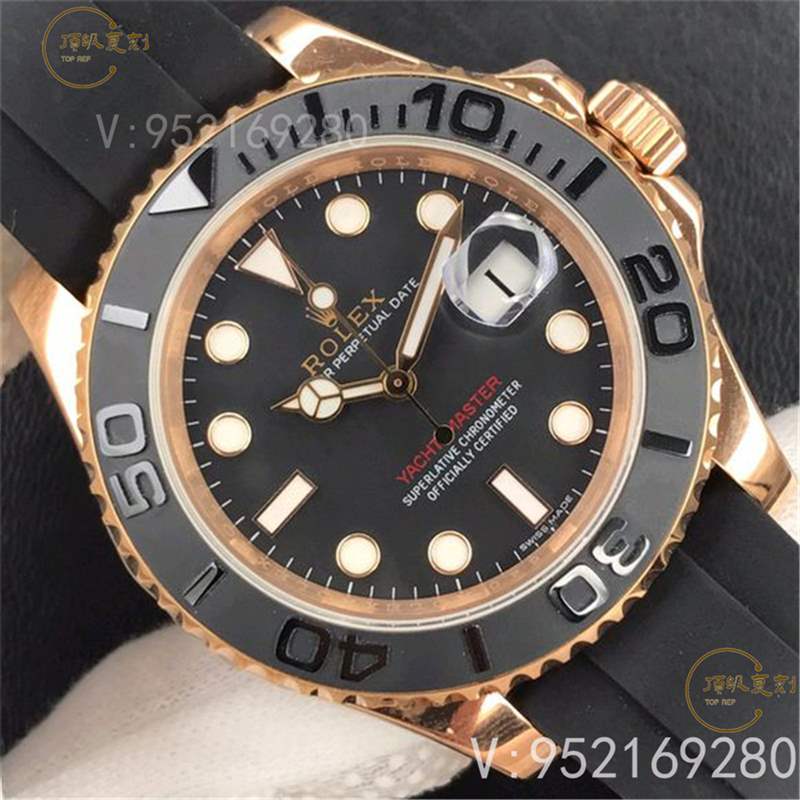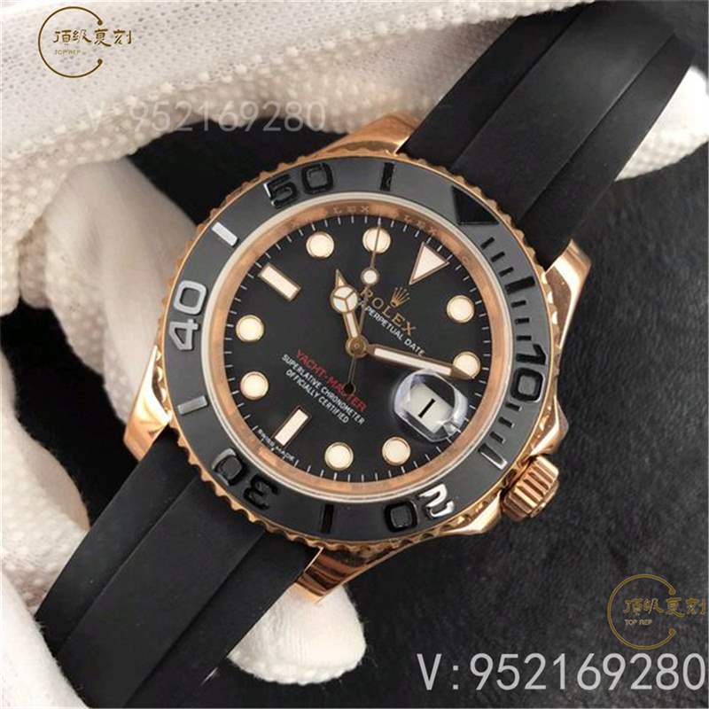 AR廠超神之作ROLEX YACHT-MASTER"116655"(金游艇)系列,表殼表扣為頂級進口904鋼,搭載2824機芯。AR版的膠帶做出了與正品一致的內含鋼片的技術與質感,能與正品通用互換!并搭配正品代購包裝配套。 最高品質"金游艇"副本【AR出品】