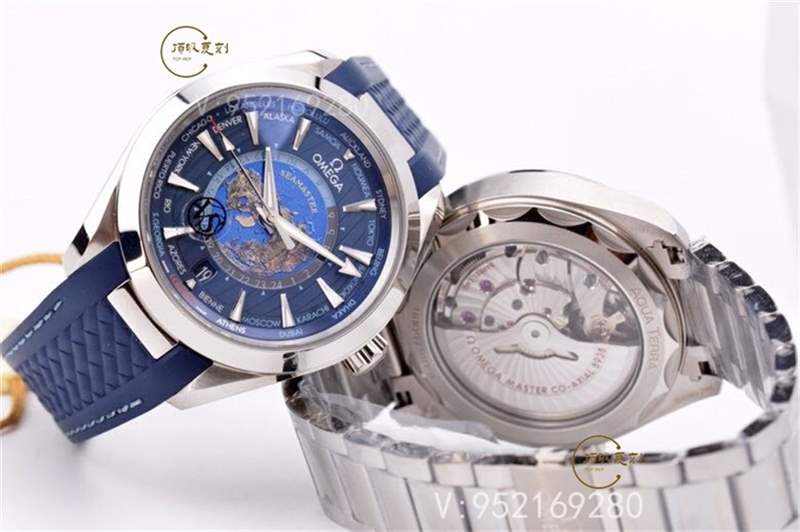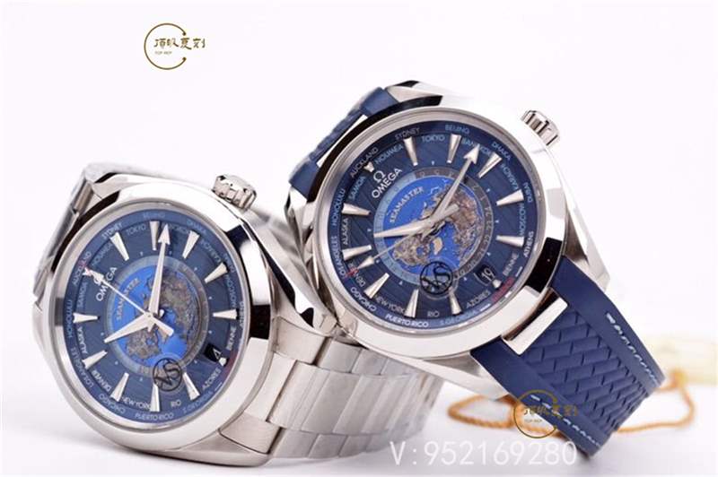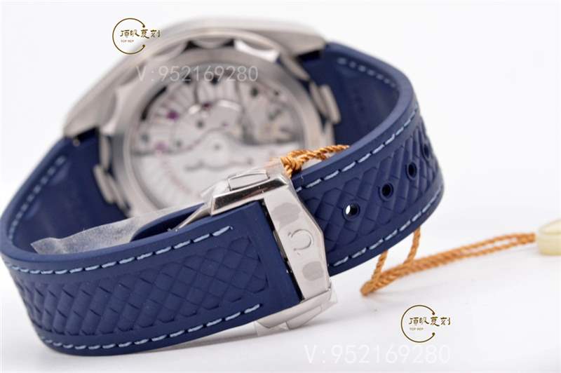 表帶和表扣藍(lán)色天然橡膠表帶和鋼帶搭配精鋼折疊扣:這次共推出兩種表帶,一個是精鋼材質(zhì)和Aqua Terra系列一貫設(shè)計(jì)風(fēng)格的藍(lán)色橡膠表帶,通過拋光實(shí)心鏈節(jié)與表殼連為一體。搭配精鋼折疊扣,扣面刻有與正品相同omega字母logo。(首批客戶買鋼帶送膠帶)