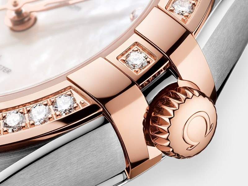 全新星座系列腕表經(jīng)過了更為精致的打磨處理,表殼及表鏈兩側(cè)新增倒角。這些經(jīng)拋光打磨的邊緣令腕表看起來更加精細,也更凸顯女性柔美氣質(zhì),為腕表增添精致之感。全新腕表?的表冠亦進行了細致精美的設(shè)計。細看之下,表冠的齒狀紋路升級為更為柔美的半月形,與經(jīng)典的半月形切面相互映襯。