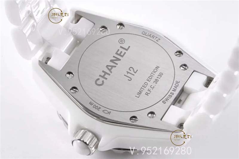 底蓋刻字深度與原裝共同、字體作用也是跟原裝相同,螺絲也是選用跟原裝相同的螺絲、所以不用擔(dān)心會(huì)一眼假。XF廠香奈兒機(jī)芯是選用與原裝相同的ETA 956.612石英機(jī)芯。