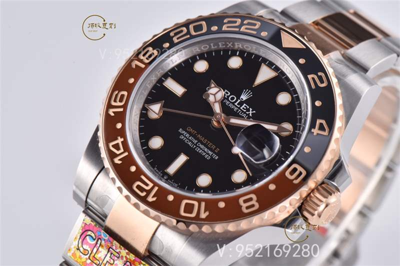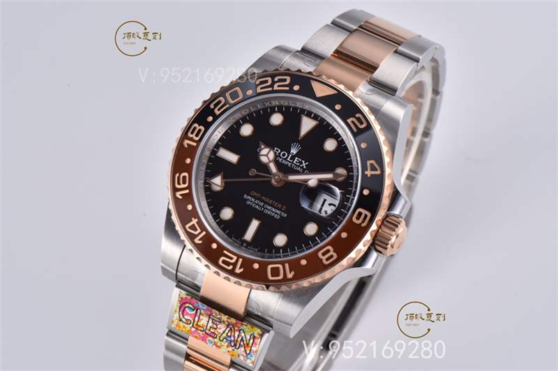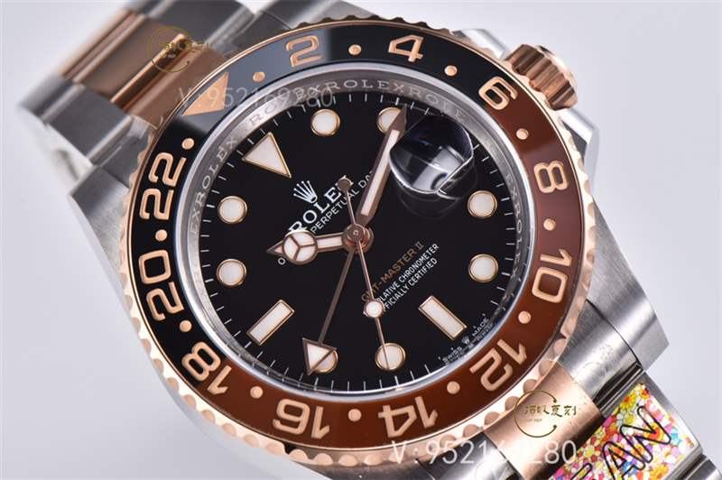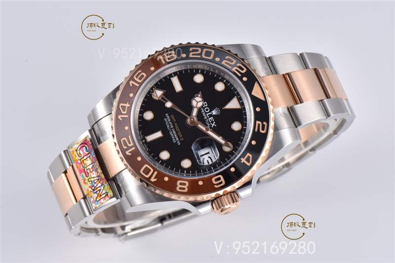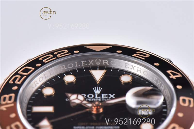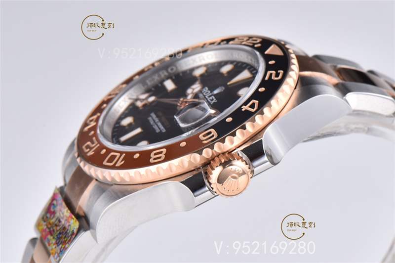 - 對于此次對于腕表陶瓷圈口方面來說,也是很為到位的細(xì)節(jié),黑色部分無色基,乃至棕色部分也基本是無色差,絕對沒有調(diào)色的嫌疑, 有正品的表友可以拿到實(shí)物對比, 所有的數(shù)宇刻度的深淺,宇形做的都較為接近,以及電銀的玫瑰金色。 整個(gè)陶瓷圈,為一體燒制 的陶瓷園,非拼接。黑色和棕色,甚本達(dá)到了一個(gè)沁色的效果,為了這個(gè)工藝也是嘗試了 無數(shù)次。 關(guān)于黑/棕 相交的部分,因?yàn)殚_模是同時(shí)購買丁兩枚原裝,原裝的界線部分是彎曲的,當(dāng) 時(shí)看到我們也很院異,但是這的確是真品的工藝,并且只要棕色部分于數(shù)宇8相交,而叉不超過數(shù)宇8刻度里面上下兩個(gè)大小0,即為真品工藝,因?yàn)殡p色燒制陶瓷圖要考慮陶瓷的收縮比,即便是真品也很難把握分寸!