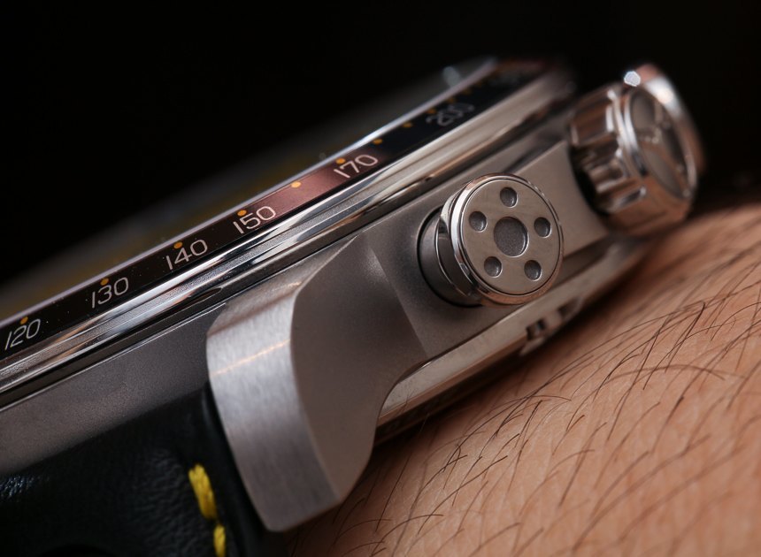一些小的汽車外殼細節(jié)又回來了,其中包括活塞式計時按鈕以及表冠上的方向盤標志。底蓋用一系列六角螺絲固定到位,使整體外觀升級。該表殼防水深度達 100 米,這是對之前型號 50 米防水深度的非常受歡迎的升級。這可能看起來沒什么大不了的,但 100 米的防水性能使這款產品進入真正的“運動手表”領域,而不僅僅是一款具有高品質組件的運動時尚手表。