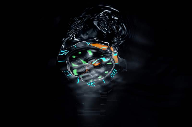 此外,清晰讀時的表現(xiàn)在水底深處攸關(guān)重要,為了提高這方面的表現(xiàn),TAG Heuer Aquaracer Superdiver 1000運用了最高級數(shù)的Super- LumiNova?夜光涂層:SLN Grade X1,效果非常明顯,即使在千米水深也強烈光亮,即使在黑暗中亦能發(fā)揮最佳清晰讀時表現(xiàn)。