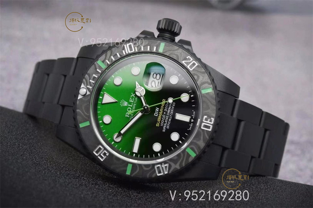 - 1,盤面非常好看,碳纖維圈口,自然的碳纖維紋路以及漸變綠盤,之感油然而生。