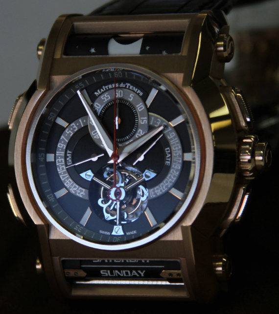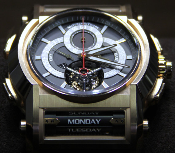 甚至Maitres du Temps的一些夢之隊(duì)設(shè)計(jì)師也不認(rèn)為這是可以做到的。你如何把像第一章這樣帶有頂部和底部安裝圓柱體的手表變成圓形?酒桶形版本足夠大。你也許可以把它變成正方形,但圓形呢?只是沒有意義。還。。。他們做到了。使表盤和表殼中央部分變圓,并延伸表耳段。瞧!除了形狀和風(fēng)格之外,Chapter One Round手表與標(biāo)準(zhǔn)Chapter One手表具有相同的機(jī)芯和功能,我最初在這里寫過(更具技術(shù)性),并在動(dòng)手處理后在這里分享。雖然第一章是更限量版的一部分,限量版只有11枚,而且比標(biāo)準(zhǔn)的第一章更貴。它還保留了我最喜歡的第一章手表部分,這是帶有“滑動(dòng)然后推入”動(dòng)作的酷炫安全推動(dòng)器。