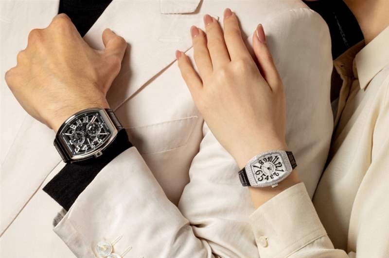 還是認為情侶表在款式上應該要有共同的特征?那可以嘗試一下同一個系列,但男女裝的款式,如Franck Muller的Vanguard? Master Banker Skeleton配襯Vanguard? Lady,大家同樣出自Vanguard?系列,同樣具有Franck Muller獨有的酒桶形表殼及弧栱形表鏡,不同的是Vanguard? Master Banker Skeleton設有鏤空表盤及第三時區與日期視窗,令腕表的復雜感看上去非常豐富,加上黑色設計配以精鋼表款,簡單而有力的設計,盡展男士剛強魅力;配以Vanguard? Lady較細的表身、簡潔具設計感的表盤和大增腕表華美感的滿鉆表殼,是一對非常有型、高雅的情侶表。