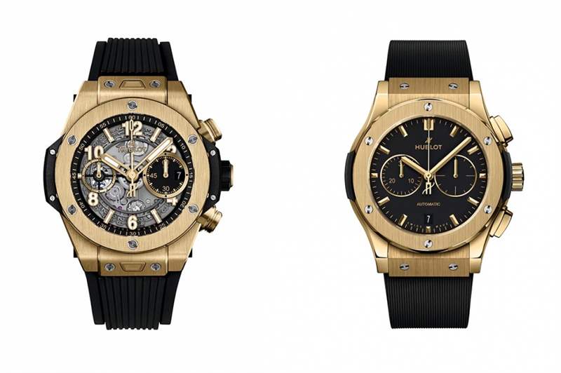 今年Hublot最新推出的Yellow Gold Collection相當漂亮,所以大家不妨以顏色作為這次「情侶表」的主題。雖然來自不同腕表系列,男戴的是Big Bang Unico,女戴的是Classic Fusion,但同樣出自Yellow Gold Collection,兩款皆是以18K黃金打造表殼,散發著Hublot一貫的霸氣與奢華感,而如果你倆都是熱愛運動之人,那這雙Big Bang Unico與Classic Fusion Chronograph更適合你們,因為兩者皆是計時腕表,不同的前者設有透視表盤設計,與大小不一的小表盤于三時及九時位置,整枚表的視覺感非常豐富,如此重型計時表適合男士配戴;而Classic Fusion Chronograph同樣是計時表,但就簡約得多,是傳統計時腕表的格局,女士比較容易配襯衣服。