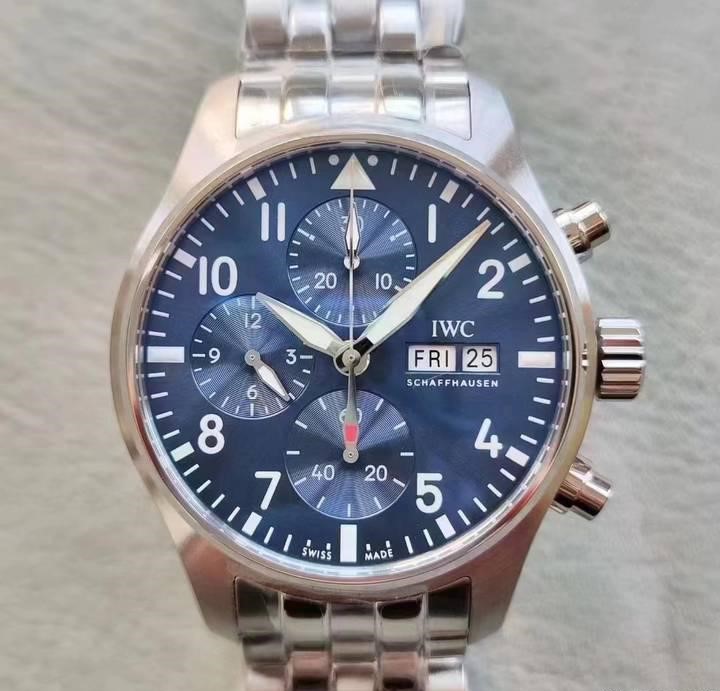 此次MKS廠推出四款型號(hào),分別為皮帶IW388101 /IW388103,鋼帶IW388104/IW388102,腕表采用316精鋼全新開模,尺寸為41mm表帶寬度為20MM,區(qū)別于市面上采用老款43mm飛計(jì)的表帶寬度為21mm。