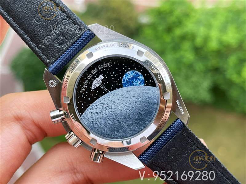 超霸史努比五十周年紀念版是為了紀念登月五十年,這款50周年紀念版腕表旨在致敬歐米茄于1970年榮獲NASA頒發的“史努比”獎,表彰品牌對“阿波羅”13號任務等人類太空探索作出的杰出貢獻。當啟動計時功能,駕駛指令/服務艙的史努比會跟隨指針旋轉,仿佛在進行太空遨游。背后的地球圓盤每分鐘轉動一次,與腕表的小秒針同步。這點n1廠超霸同步正品,下面看看n1廠超霸史努比五十周年做工怎么樣吧!
