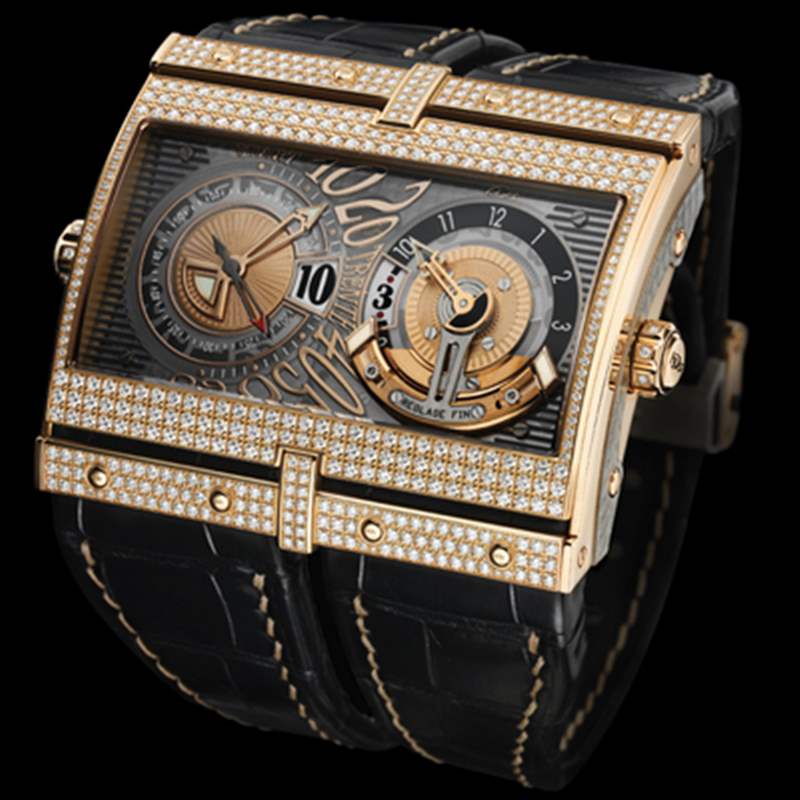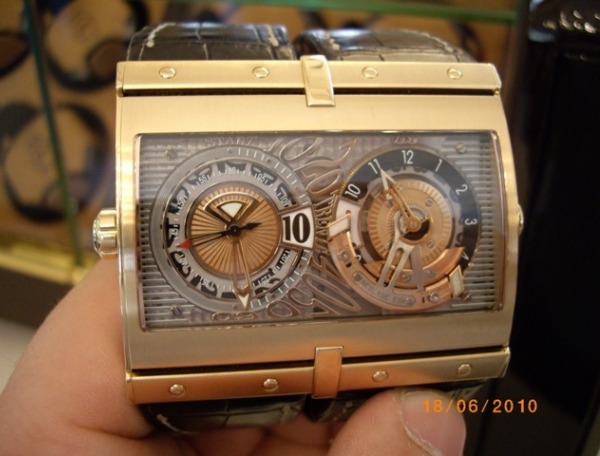 伊達爾戈XT-2采用金色(我相信還有其他金屬)外殼,寬65毫米,高52毫米(厚15毫米)。表殼實際上是彎曲的,可以越過你的手腕。在真正的HD3時尚中,它有“雙帶”。對我來說,表殼比表盤更酷。我不確定手表是否有一個或兩個機芯,但我知道它是HD3第一次嘗試超越和現有機芯來修改某些東西。XT-2機芯基于至少一臺瑞士ETA 2892自動上鏈機芯(我相信這只是一個機芯)。當然,運動也增加了很多。您擁有的是兩個時間撥號,每個時間撥號都以完全不同的方式完成。