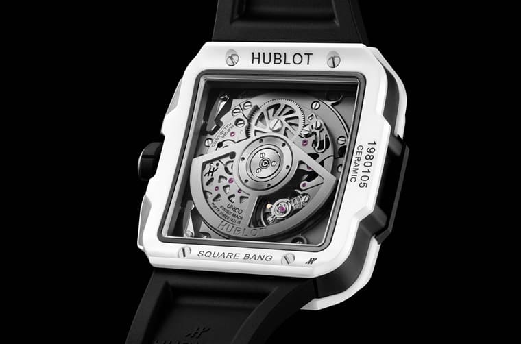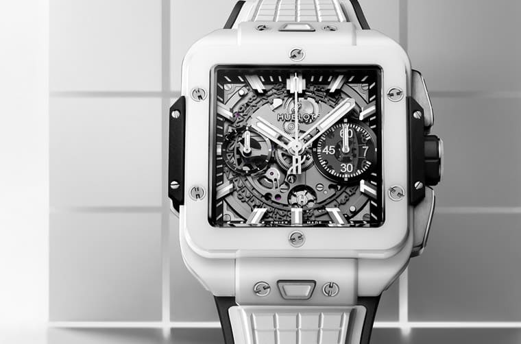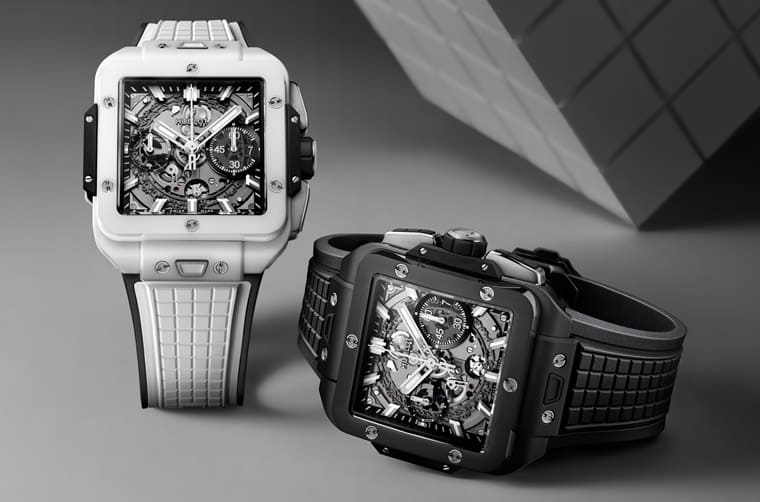 ▲宇舶2023年再接再厲推出新款Square Bang Unico計時碼表,一改去年以金屬材質為主的模式,今年新款改以藍寶石或陶瓷材質呈現。