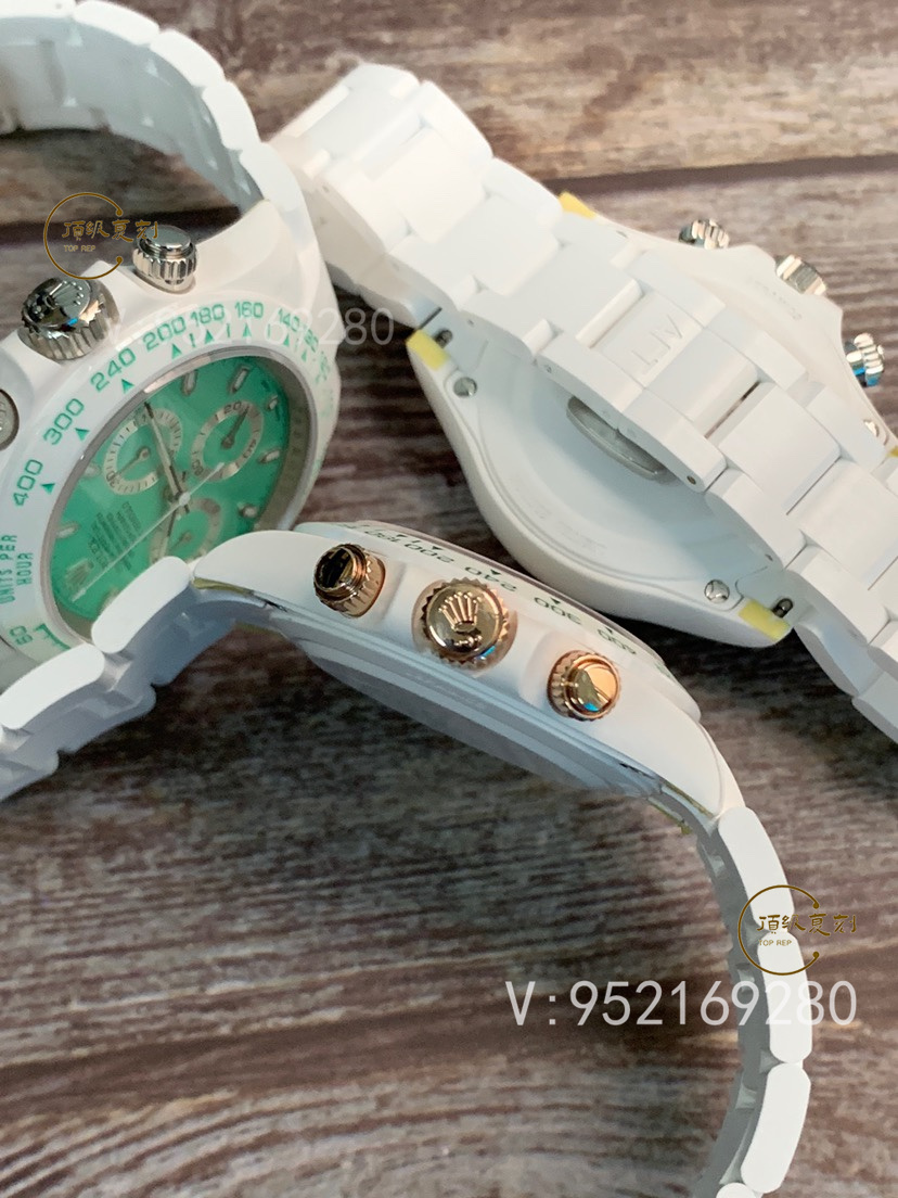 大家好,我是zs小編,今天給大家介紹一款改裝勞力士迪通拿產品,是AET廠近期推出的白色陶瓷迪通拿,內部搭載的同N廠一樣的丹東4130機芯,這款機芯在N廠被查以后也算是半放開了,很多工廠都能拿到。AET廠也是一個新工廠了,這次的迪通拿外觀做的非常精致,陶瓷的表殼、表帶、扣,下面看看這款表做工評測吧!