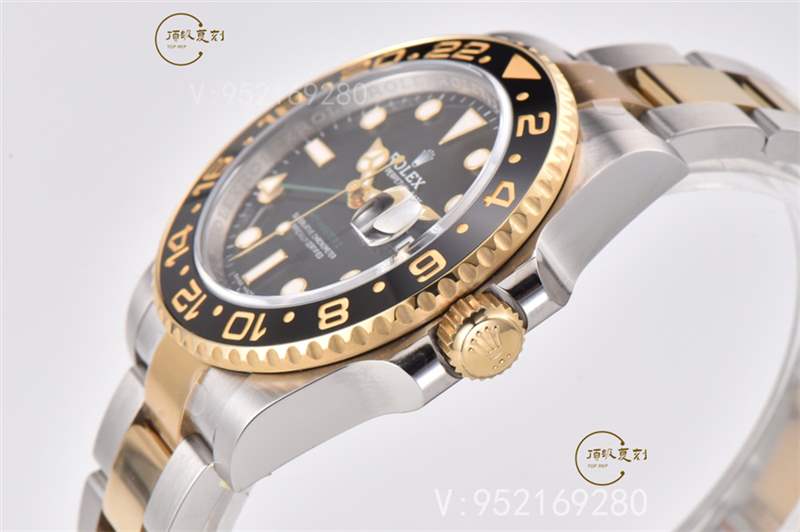 表殼外觀,全部采用904L殼身,完美還原gmt整個殼形,修正gmt轉圈手感。皇冠 把頭部分也展現出,浮雕皇冠效果。采用和原版一致的3186機芯。 底蓋部分,也和原版一致,拋光,拉絲,以及表殼底部拉絲。底蓋與表殼的契合程 度,幾乎一致。把頭與表殼縫隙可以自行對比。內影部分,全系列全部修正字母 “R”的尾巴,微微凸起。如果真的要吹毛求疵,那就是內影部分,底紋沒有原版細膩,受限于國內激光技術以及設備。