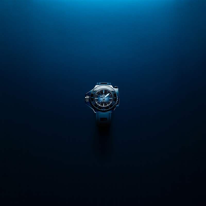 至于潛水表之最,當然不少得2019年推出的海馬Ultra Deep,當時創下了馬里亞納海溝深潛之世界紀錄,防水深度高達6,000米。是次新系列的45.5mm腕表,表殼及表鏈皆以O-MEGASTEEL材質打造,吸睛的設計有表面上的馬里亞納海溝挑戰者深淵圖案,以彰顯其獨特性,亮漆表面可以突顯出海洋的層次感,放于UV光源之下則會顯現「OMEGA WAS HERE」的字樣,采用的機芯與「Ploprof」同樣是品牌8912 Co-Axial Master Chronometer機芯。最后,雖然海馬系列向來是技術與工藝的頂級表現,但是次的新系列既加強了整個系列的獨有元素,亦開創了一系列嶄新的海洋美學,表面以藍色為主調,并且會視乎設計所需逐層涂漆,以營造出流動效果圖案,除此之外還特意推出一系列配飾,相信無論是海洋愛好者還是潛水表迷都會對此愛不釋手。