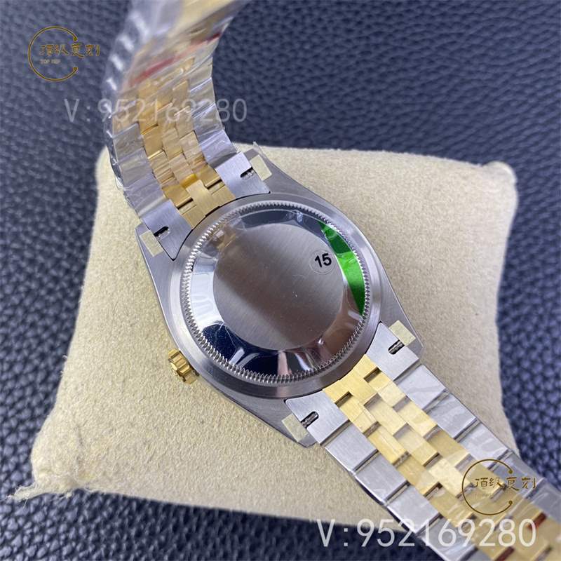 這款vs廠勞力士日志36mm的還原尤為到位,那種極具誘惑力的設計非常的抓人眼球,36毫米的一個尺寸看起來很嬌小,但實際上駕馭的難度非常的低!不只是男士可以佩戴駕馭,不少的女士也可以! 視覺魅力直接拉滿!在材質方面,這次的手表采用的是經典的904鋼,精鋼材質與玫瑰金的層次感,讓其相比于其他看是多了一抹華麗感,手表對于整體手表的拋光處理非常到位,使得手表非常亮眼,鏡面搭配為經典的藍寶石鏡面,鏡面方面的通透性很為強大同時對于鏡面內里也是進行了電鍍,從而增加了腕表的通透力度,對于鏡面六點位置,也是有涉及到防偽標識,內影處的刻字也是很具清晰!刻度為羅馬數字不僅美觀,而且很容易辨認羅馬表盤通常會給種高貴、典雅的感覺