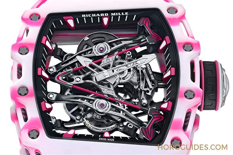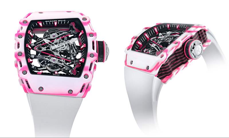 粉色。毫無疑問,新款RM 38-02 Bubba Watson陀飛輪腕表完全符合這一要求。腕表從里到外,甚至表殼均由獨一無二的粉色和白色Quartz TPT?石英纖維以及Carbon TPT?碳纖維材質制成,與Bubba的獨特個性相得益彰。在不溶合的情況下要將不同顏色和材質相結合的確是一項真正的技術挑戰(zhàn)。