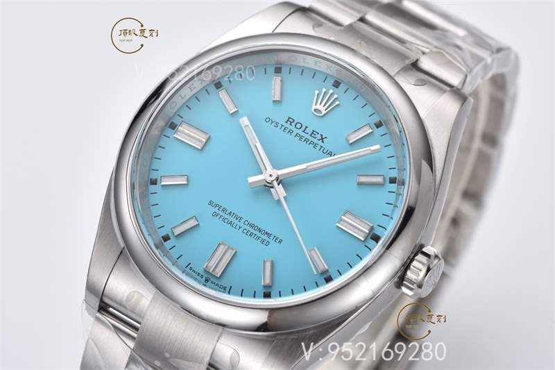 C廠勞力士蠔式恒動在逐漸齊全中,目前推出的是36mm尺寸,采用的是904精鋼材質,同步原版,表殼做工細膩,拋光拉絲工藝相結合,都是C廠水準。鏡面采用的是高品質藍寶石鏡面,通透度很高,耐磨耐刮,注意別磕碰。盤面以蒂芙尼藍為例,顏色調配還是很不錯的,比較起來C廠和VS廠的顏色調配都會比EW廠更好一些,尤其是一些盤面顏色比較特殊的款式,比如這個蒂芙尼,EW廠顏色是會略深的,而C廠和VS廠則更為準確無色差。