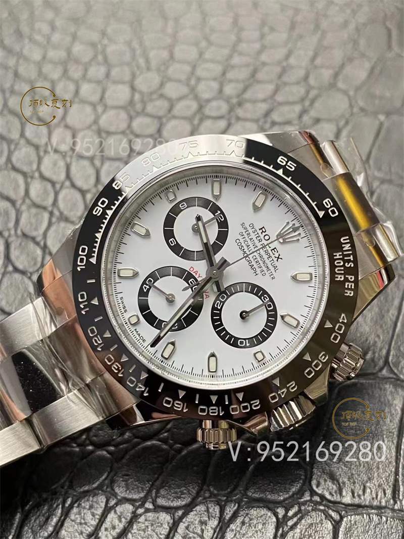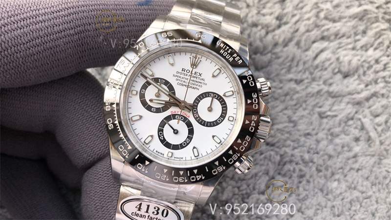 藍寶石鏡面的搭配,從而也是讓腕表的通透性方面非常強大,當然鏡面在后期使用起來也是不會出現刮痕,當然鏡面的內影處細節也是非常清晰,鏡面也是進行了電鍍工藝,從而增加腕表的通透感,在鏡面的六點位置也是有附和了防偽標識,這也是勞力士的常用細節點!然而對于字面細節,此次C廠也是做的很為到位,整體字面方面刻字很為清晰,然而對于腕表的功能盤CD紋也是非常清晰,經典的計時布局,也讓腕表在細節上處理來說,C廠也是很為不錯,當然對于字面下面也做了實拍記錄!