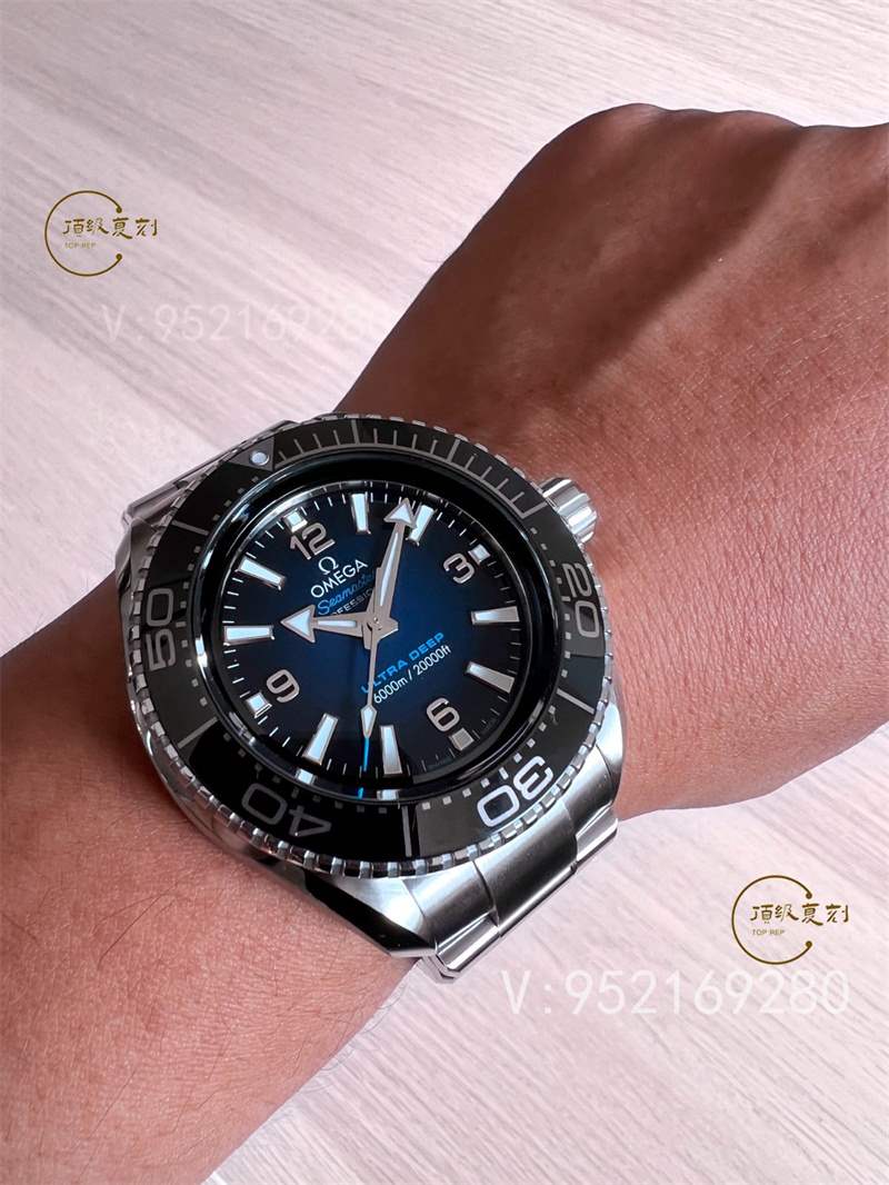 海馬6000米直徑45.5毫米,并沒有比常規(guī)款的海馬海洋宇宙大多少。18毫米的厚度,也就比常規(guī)的海馬海洋宇宙600米厚了2毫米而已,而防水性能卻是前者的10倍!18毫米這個厚度,歐米茄不是拍腦袋隨便定的,而是經(jīng)過詳細(xì)的市場調(diào)研,認(rèn)真傾聽了消費者的意見。對于這樣的超級潛水表,消費者能接受的厚度就是18毫米。所以在設(shè)計海馬6000米的時候,就把厚度定在了18毫米,一切以此為前提進行研發(fā)。