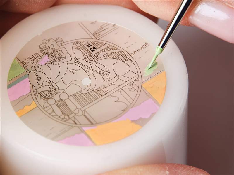 微繪師選用富有表現(xiàn)力的顏料描摹女騎士,讓形象更為生動(dòng)和醒目,飄逸的長發(fā)與披肩、馬匹身上的高光與陰影細(xì)節(jié)立體而生動(dòng),每枚表盤都需要耗費(fèi)超過35個(gè)小時(shí)制作。