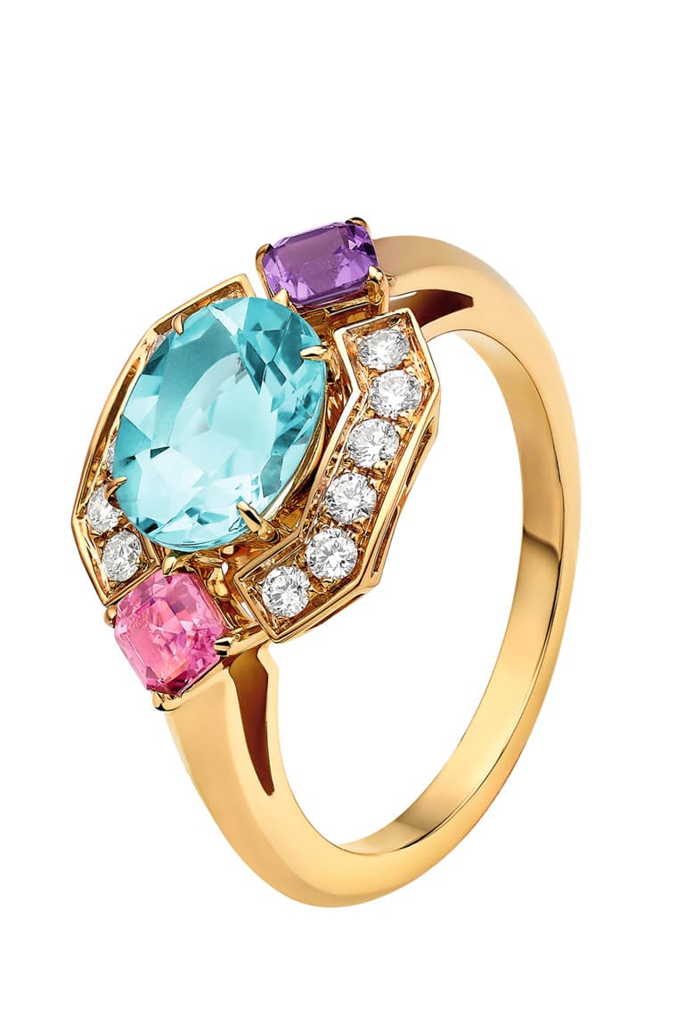 寶格麗將彩寶靈活運用,并在九種細致的色調搭配之間,呈現出Allegra系列五款珠寶新作。各式新作藉由不同切割、形狀、顏色與光影,將精致的琢面寶石化為均衡和諧的設計,盡展創意與愉悅從容。在保有原創活力與幾何層次的同時,Allegra珠寶與腕表還融入了極佳的穿戴性,體現在靈活、輕盈且時髦的鑲嵌設計之上,極力滿足當代女性對于多樣搭配以及美感體驗的要求。