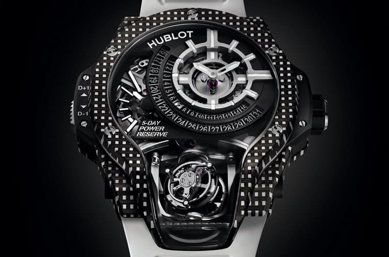 光能做出白色3D碳纖維還不夠,因為MP-09雙軸陀飛輪擁有立體前衛的造型,所以宇舶厲害的地方還包括可以用這種科技材質達到折曲、轉角、傾斜式平面等目的,用以呈現手表的霸氣外觀,甚至品牌也會確保這種新材質應用到未來主義的手表時,它的防水性與耐用性也能跟傳統材質如金屬、陶瓷等一樣可靠。