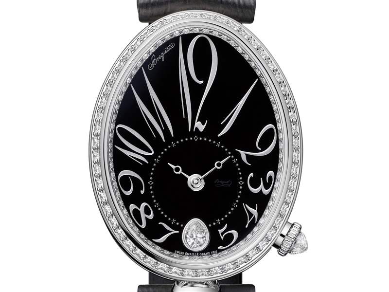 為紀念那不勒斯王后系列誕生20周年,Breguet 剛剛推出一枚 Reine De Naples 8918 女士腕表新作,特別之處是首次采用黑色大明火琺瑯表盤搭配銀色指針和時標,極簡約的黑白對比更強調獨立而優雅的強大氣質。