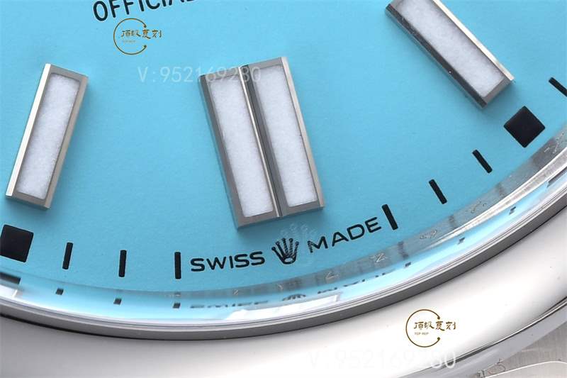 這一次我們對比的這一只Tiffany藍恒動,也是比較多人關注的款式,外觀呈現的淺藍色也屬于比較熱門.關于尺寸方面就有31mm-36mm-還有41mm,目前兩家廠都是除了36跟41mm.尺寸方面就沒有特別多的對比,都是同樣的工藝同樣的材料,只是把復刻的模具增大尺寸就能夠完成的小問題.除了機芯之外的對比,對于表盤之間的比對也是比較重要的.因為關于這張藍盤的復刻難度比較要做到對版的狀態是需要原裝開模才能夠一比一還原.C廠恒動正是使用了正品開模,經過測試幾次的色板對比,達到接近百分之98后才會進行量產.
