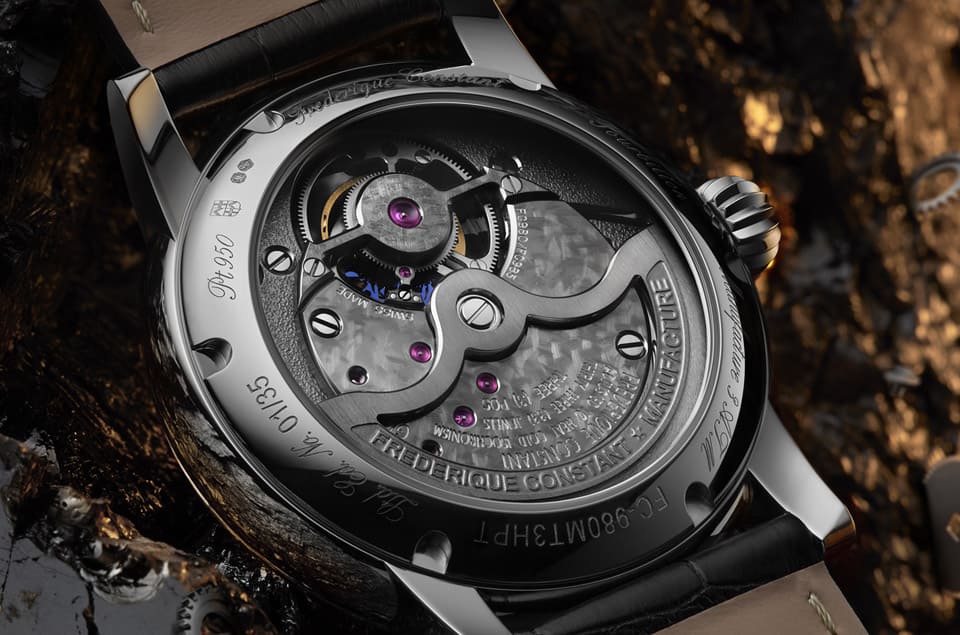 表款搭載的是他們2008年首度研發(fā)而成的FC-980自動機芯,這枚機芯除了達到陀飛輪等級的復(fù)雜度,還蘊含矽質(zhì)擒縱輪和擒縱桿等零件,有助于優(yōu)化手表的性能與精準(zhǔn)度。而康斯登當(dāng)初在研發(fā)機芯時也刻意將陀飛輪組件的重量控制在0.59克,使其在運轉(zhuǎn)過程中所消耗的能量較低,間接使得機芯的動力儲存能夠維持在38小時的正常水準(zhǔn)。