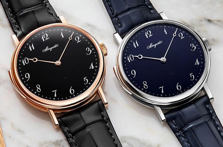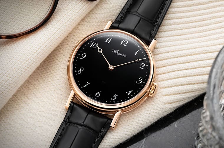從手表表殼左側的滑桿可以先一步感受到它并非一般單純的二針基本款,只要佩戴者撥動滑桿,就能欣賞到機芯奏鳴出悅耳的時、刻、分報時樂音,那會是讓所有表迷都非常感動的瞬間。 新款Classique 7637的主要變化出現在面盤,這是寶琺自從2022年改款以來的新重點——當時品牌采用白金表殼搭配藍色大明火琺璡面盤,一年后接力問世的玫瑰金款則是再換成黑色大明火 琺璣,除此之外兩者的面盤格局都一樣,包括立體寶璣數字時、寶琺指針,以及面盤邊緣的寶璣數字時符(由小星分鐘刻度及百合花五分鐘刻度組成, 最早出現在1790年寶琺大師制作的時計),這種特殊的刻度常見于采用琺琺面盤的寶琺手表,所以無論是2022年的白金藍色琺瑯面盤,抑或2023年的玫瑰金黑色琺琺面盤,它們的面盤細節其實大同小異,所差者即在于品牌會視表殼材質更換指針與時標材質,達成更為一致的視覺感受。