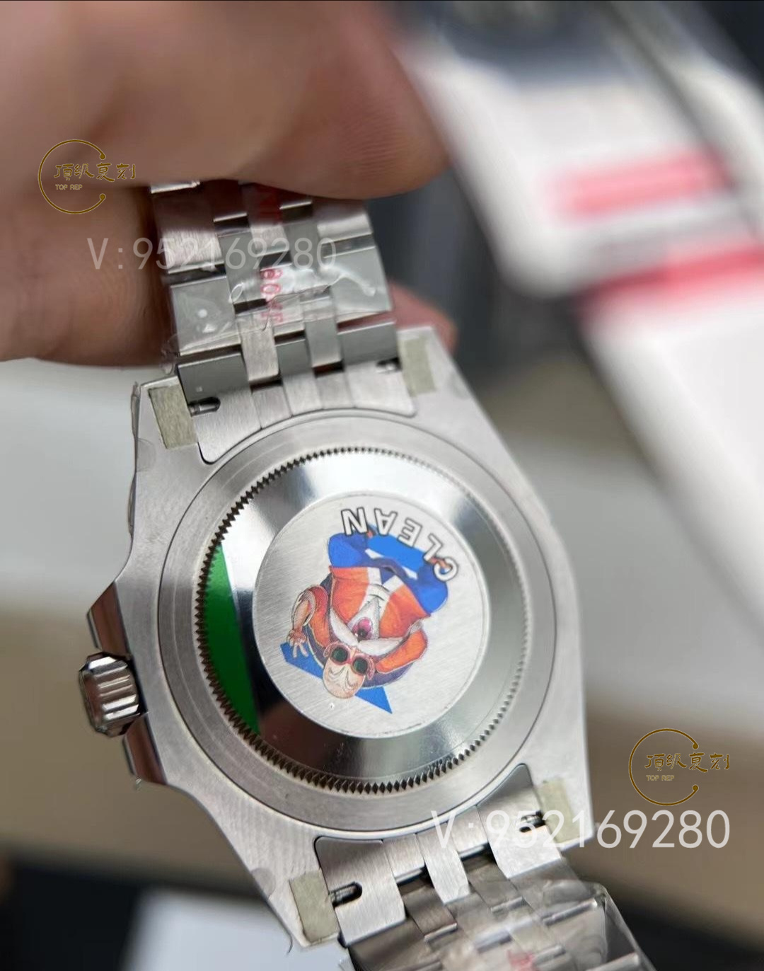 大家好,今天給大家評測的手表是C廠勞力士格林尼治左撇子雪碧圈,這款腕表一共有兩種表帶,一個五珠鏈,還有三株表帶。這款手表比較獨特因為它的把頭在正常手表相反方向,所以目前唯一一個用顏色來打的都在左邊、 只有這個雪碧一圈而已,黑綠雙色陶瓷圈的配色很有特點。復刻表市場上有很多廠在做,然后做的比較好的是C廠,因為C廠用的機芯的是丹東3285機芯,它的機芯是非常穩定的,包括調時間的方式,都是同步的,也是目前行業的最高版本,下面我們來看看C廠勞力士雪碧圈的測評。