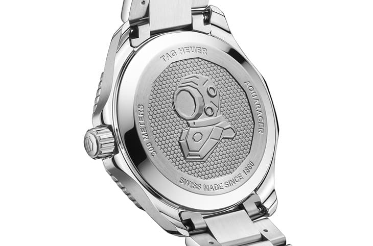 從面盤6點方向的“CHRONOMETER”字樣可知,新款Aquaracer Professional 300潛水表兩地款機芯有變,從Calibre 7 GMT換成了TH31-03機芯,一來機芯動力儲存由50小時提升至80小時,同時機芯還通過了COSC瑞士天文臺認證,佩戴者在享受著手表與上一代相同實用便利的功能和機能之余, 在改款后手表的整體水平包含售后服務(五年延長保固)都有了深層的進化。 稍微可惜的是手表還是采用實底蓋,因此無法看到內部機芯的設計與打磨,不過這時候也剛好可以細細欣賞系列與時俱進的Scaphander潛水頭盔圖案,其在圖案周邊還加上六邊形點綴,圖案整體的設計頗為用心,也很能呼應系列的專業潛水表血統。