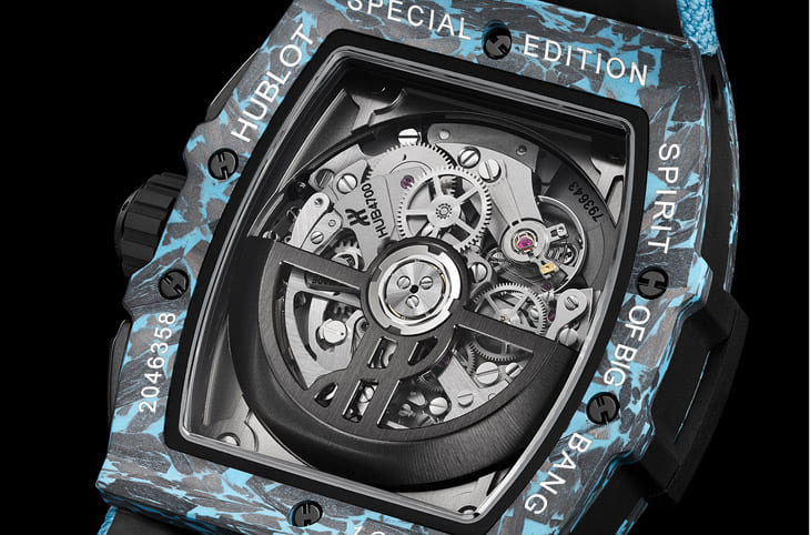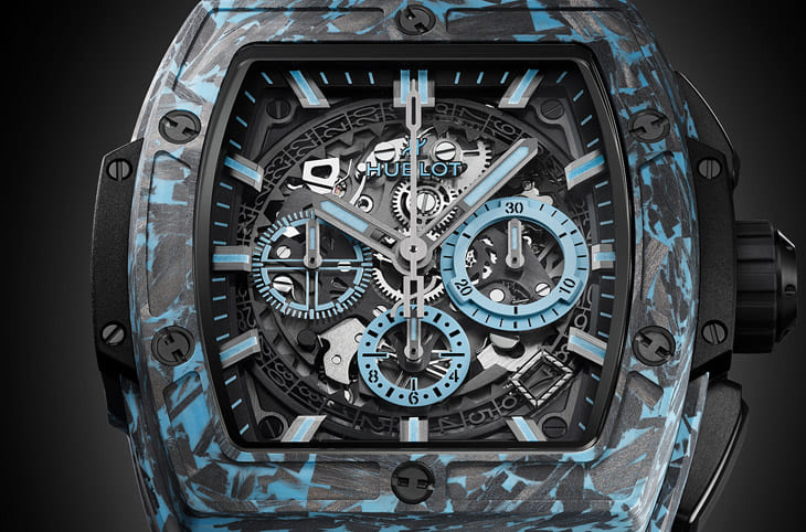 Spirit of Big Bang迷彩藍碳纖維計時碼表在細節設計上同樣引人注目。