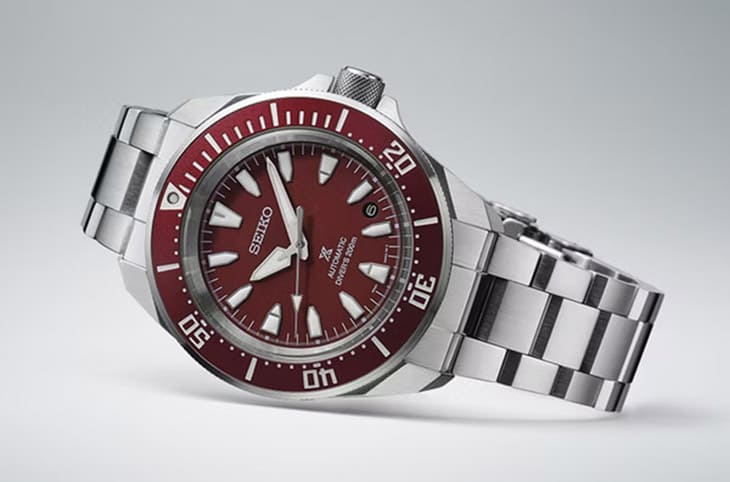 • 特點: 精工的Samurai武士系列以其大膽的酒紅色表圈和面盤,在傳統(tǒng)潛水表中獨樹一幟,提供與眾不同的佩戴體驗。