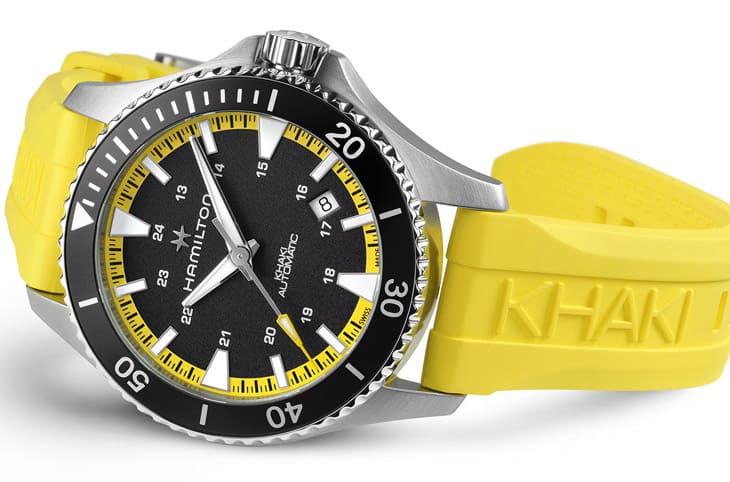 • 特點: 哈密爾頓的這款Scuba手表以鮮明的黃色點綴,包括秒針和橡膠表帶,搭配不銹鋼表殼和黑色表盤,展現(xiàn)出獨特的海軍風(fēng)格。