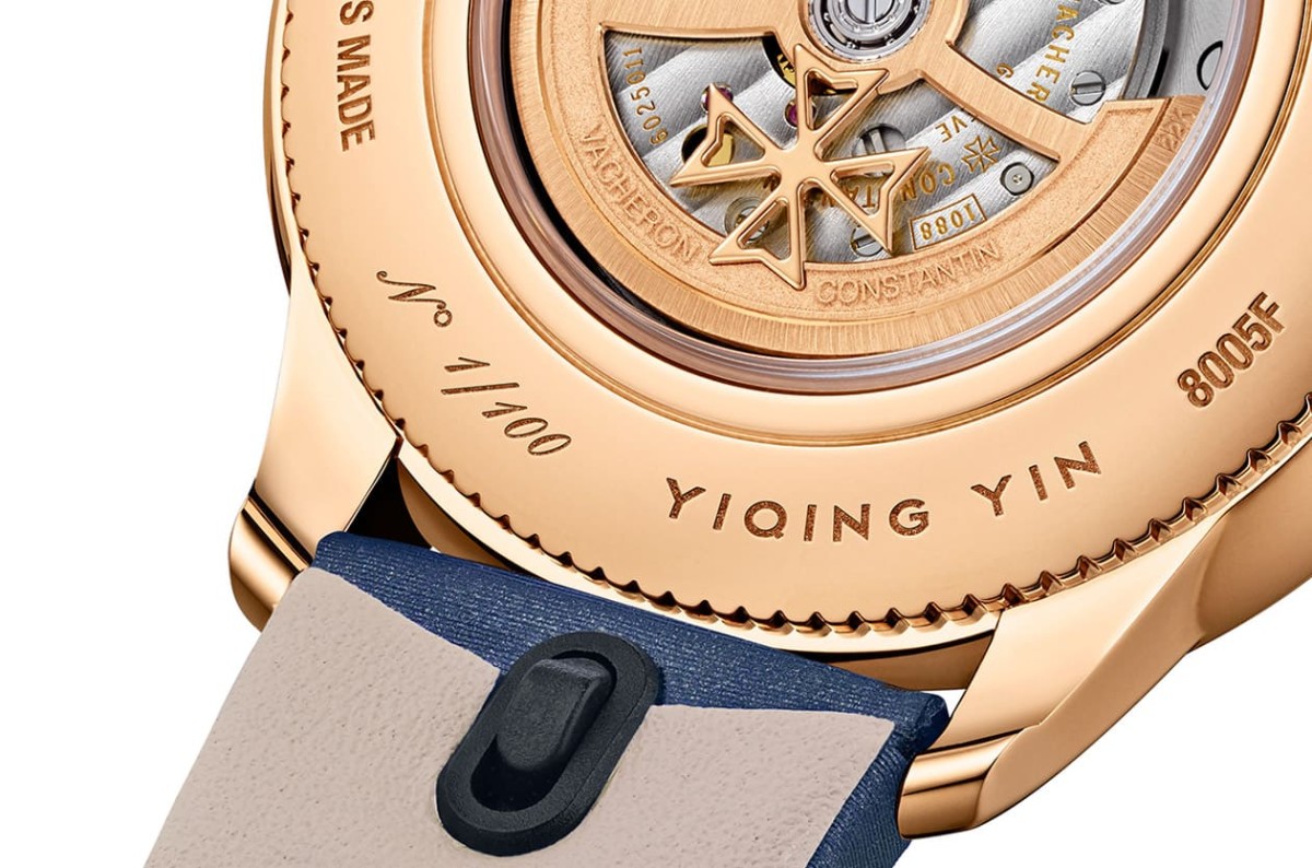 égérie月相腕表采用色澤溫潤亮麗的18K 5N粉紅金打造,37mm的大器表殼另于表圈鑲上58顆圓鉆,而罕見置于2點方向的表冠上則鑲有一顆凸圓形月光石輝映腕表的復雜功能。 由表帶延伸進面盤的丁香紫色調靈感來自殷亦晴的高訂時裝作品風格,例如他會以銀紫色面料疊搭淺丁香紫色或云紋紫色詮釋一種柔美縹縹的幻夢美感。 此外腕表面盤中央與邊緣出現的褶皺紋飾也和設計師服裝作品常塑造的疊褶和垂墜效果呼應,江詩丹頓精選出丁香紫色珍珠母貝,并精細于脆弱的珍珠母貝表面雕琢出一道道放射狀條紋形成褶皺感。 令人驚艷的是,品牌還在褶皺紋飾的末端一一以手工鑲上金質珠粒,密致的排列剛好能作為判讀分鐘的刻度。 這款égérie月相腕表連與表冠同方向的月相顯示也以丁香紫色珍珠母貝制作,搭配金質月亮隨著運轉周期呈現陰晴圓缺,月相盤周圍另鑲嵌上34顆美鉆閃閃動人,將紫色的魅力直送進佩戴者眼簾,一股飄然輕柔的美感油然而生。 值得一提的是,腕表的透明底蓋邊緣特別鐫刻上設計師的英文名稱以及每一只腕表的限量編號,讓人在欣賞1088 L機芯組件的精致作工之外,還能感受到腕表珍稀可貴的意義,江詩丹頓甚至也替腕表導入表帶快拆系統,除了丁香紫色鱷魚皮表帶,還有同由殷亦晴設計的夜空藍緞面效果小牛皮和粉紅色粒面小牛皮表帶可供表主隨性更換。