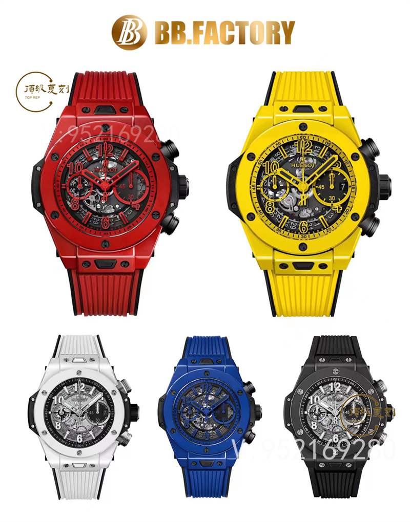 BBF廠全新突破彩色陶瓷問世 HUBLOT 宇舶表BIG BANG Unico 大爆炸系列彩色陶瓷腕表,陶瓷工藝史無前例的重大突破,砸重金耗時四年,得以突破傳統的陶瓷材料。全新彩色陶瓷采用精湛的技術,將高壓力和高熱相融合,無需燒制顏料就能鍛造陶瓷。這一全新的陶瓷材質擁有高密度的特性,在此之前,行業尚未在陶瓷材質的工藝技術和美學方面獲得如此突破。BBF對每一道工序均精益求精,精心打造該特殊陶瓷表殼的每一個部件。BBF為掌握此項技術歷經四年時間潛心研發,不遺余力地在對材料的探索路上砥礪前行。目前這項發明的技術 為BBF所獨有 標配定制恒寶專屬UNICO HUB 1280自動飛返計時機芯,3字位鏤空日歷環,3字盤60分鐘計時,(注:市面7750機芯均只能計時30分鐘)8字位水平離合、9字位小秒輪、藍寶石水晶表鏡、橡膠表帶搭配陶瓷折疊表扣,七彩紋指針質感無可挑剔 45mm 全部功能100%完美實現,天花板級別,歡迎玩家品鑒(BBF出品 必屬精品)