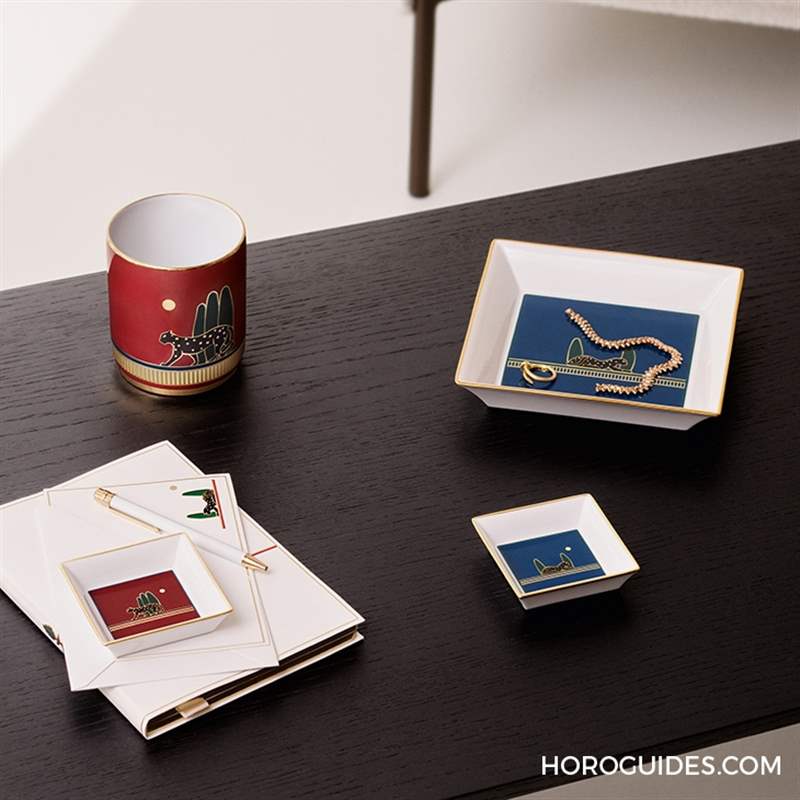 1914年,美洲豹首次以豹紋腕表造型亮相,旋即成為卡地亞典范之作。三年后,美洲豹化抽象為具象,在1917年路易·卡地亞Louis Cartier饋贈貞·杜桑Jeanne Toussaint的化妝盒上,現(xiàn)身于兩顆柏樹之間。美洲豹自誕生以來,不斷煥發(fā)新貌。如今,美洲豹圖案在黑色、綠色、藍(lán)色和紅色的繽紛對比中得以精彩演繹。各款托盤和花瓶等陶瓷精致擺件均盡顯風(fēng)格。
