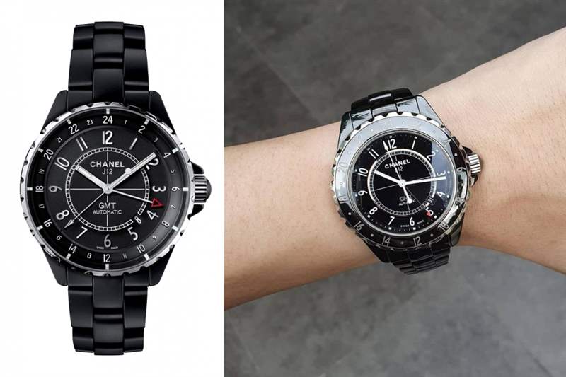 若覺得J12的大三針款略為單調,可考慮這款有兩地時間功能的型號,腕表以一支有紅色箭頭的GMT指針指示居住地時間,出外旅游佩戴自然更方便。