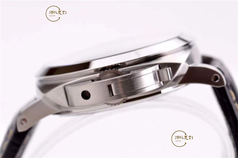 表帶:表帶是區(qū)分真假的重要依據(jù),VS廠沛納海1312的表帶采用的是牛皮表帶,外觀上很難看出真假,但是材質(zhì)不同,正品為鱷魚皮帶,所以比較柔軟,復(fù)刻的比較僵硬,不過復(fù)刻的車縫線以及背面的字體打印都規(guī)整。表帶結(jié)構(gòu)為快拆式,針扣拋光打印跡。國內(nèi)可以作出與正品一致的鱷魚皮帶,柔軟細(xì)膩,不過成本太高,即使批量出廠也要千元左右,這就是為啥一條真品的表帶三四千的價格的原因。