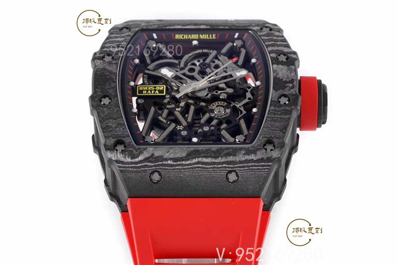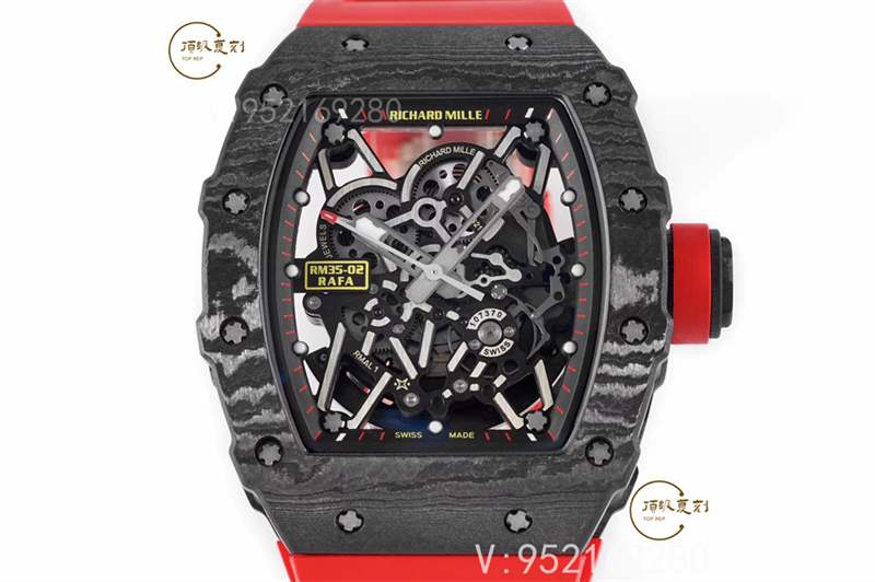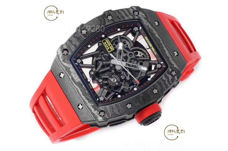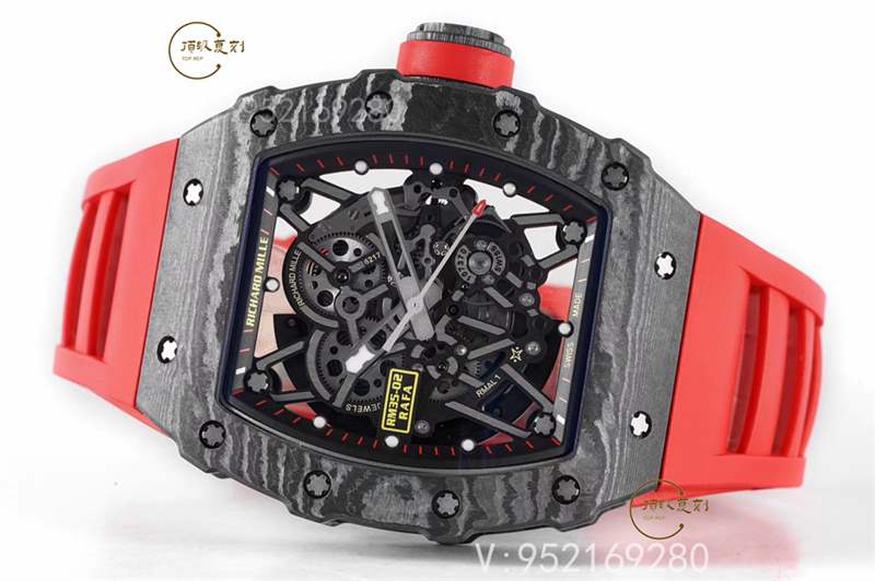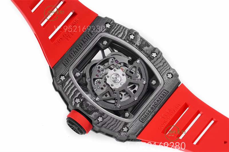 ZF理查德035屬于購入正品原版開模具,所以藍寶石鏡面,把頭上的膠圈,橡膠表帶,鈦金屬表扣均可與原裝通用。ZF廠出品的理查德米勒RM035-02最大特點就是一體定制版本RM.RMUL3機芯,經過3巴防水檢測,轉輪功能正常,還有最佳碳纖維表殼,暫時來說非常完美。