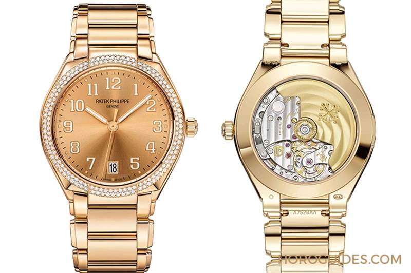 百達(dá)翡麗于2018前推出Twenty~4自動(dòng)腕表圓形表殼款式,保留了Twenty~4系列專屬的表鏈設(shè)計(jì),貫徹Twenty~4時(shí)計(jì)對(duì)于當(dāng)代經(jīng)典的追求。7300/1200A Twenty~4不銹鋼自動(dòng)腕表,是系列首款綠面表,施以放射紋的橄欖綠面綻放細(xì)致光華。立體時(shí)標(biāo)和白金指針皆有夜光涂層,六時(shí)位置配置白金邊框日期窗。另一款編號(hào)7300/ 1200R Twenty~4玫瑰金自動(dòng)腕表,選用玫瑰金放射紋表面,配搭玫瑰金指針、立體時(shí)標(biāo)和日期窗,與表殼色調(diào)和諧一致。