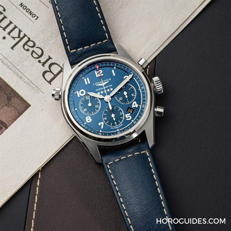 現代人佩戴手表,當然不再需要背負著如此重大的使命,但是作為致敬先鋒精神的作品,浪琴Spirit先行者系列從經典的飛行時計中汲取靈感,融合傳統飛行表的特色以及現代美學,打造出一個帶點熟悉感、又充滿新氣象的系列。Spirit有三針日期以及計時碼表款式,并各有啞光黑、磨砂霧銀以及太陽放射線紋藍面三種面盤配色。其中藍面的計時碼表作為主打款式之一,既是近年熱門色系,加以更具運動氣息的計時功能,人氣自然極高。